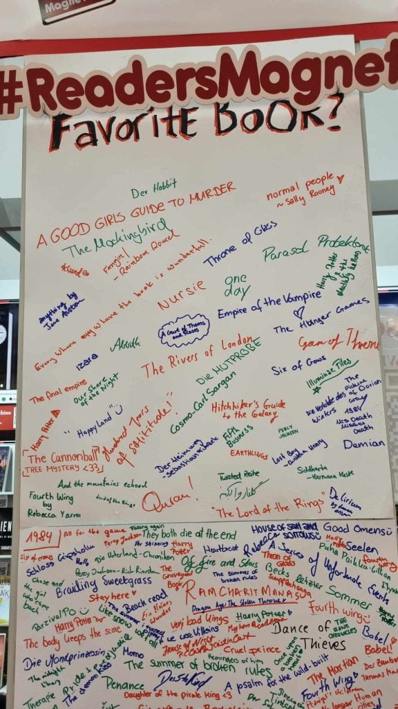 ReadersMagnet had a fun idea to let people write down their favorite book on a designated portion of the wall. The answers that people wrote down are absolutely interesting. Some wrote down famous book series like The Hunger Games. Others wrote down some non-fiction literary works of art, too.